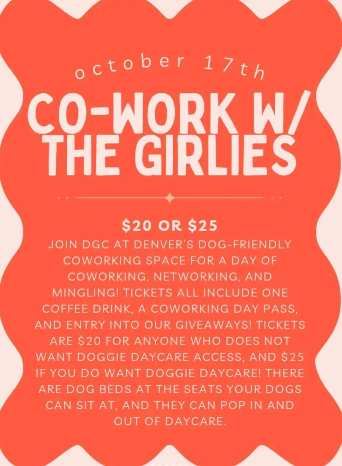 Bring your pup to work! This co-working day welcomes you and your dog for productivity, networking, and tail wags. With WiFi, call booths, coffee, and the chance to connect with other dog-loving professionals, it's basically the perfect workday.