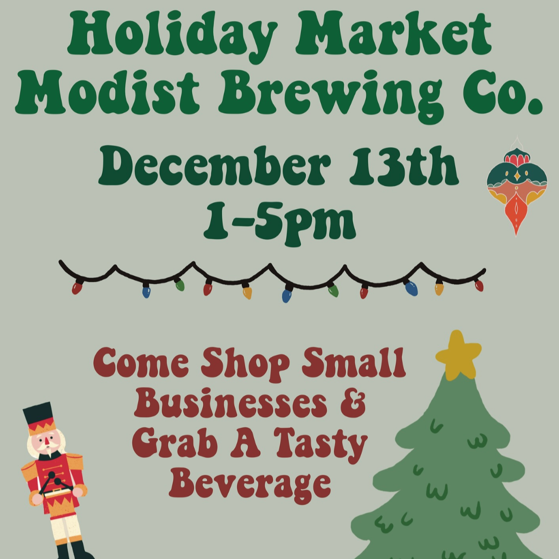 Modist’s taproom turns into a lively holiday market featuring local artists and independent businesses - expect fine art, cross-stitch, wrapped jewelry, candles, tattoo artists, and more. It’s one of those markets where every booth has something interesting to offer.