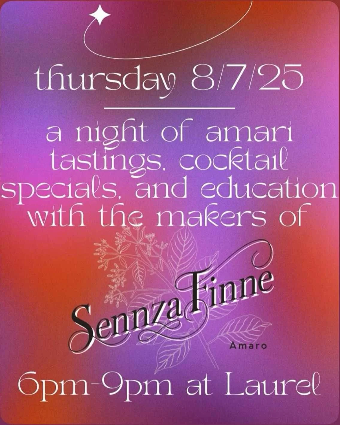 Meet the sweetheart makers of Sennza Finne libations in house for a night of cocktail specials, Amari tastings, and education.