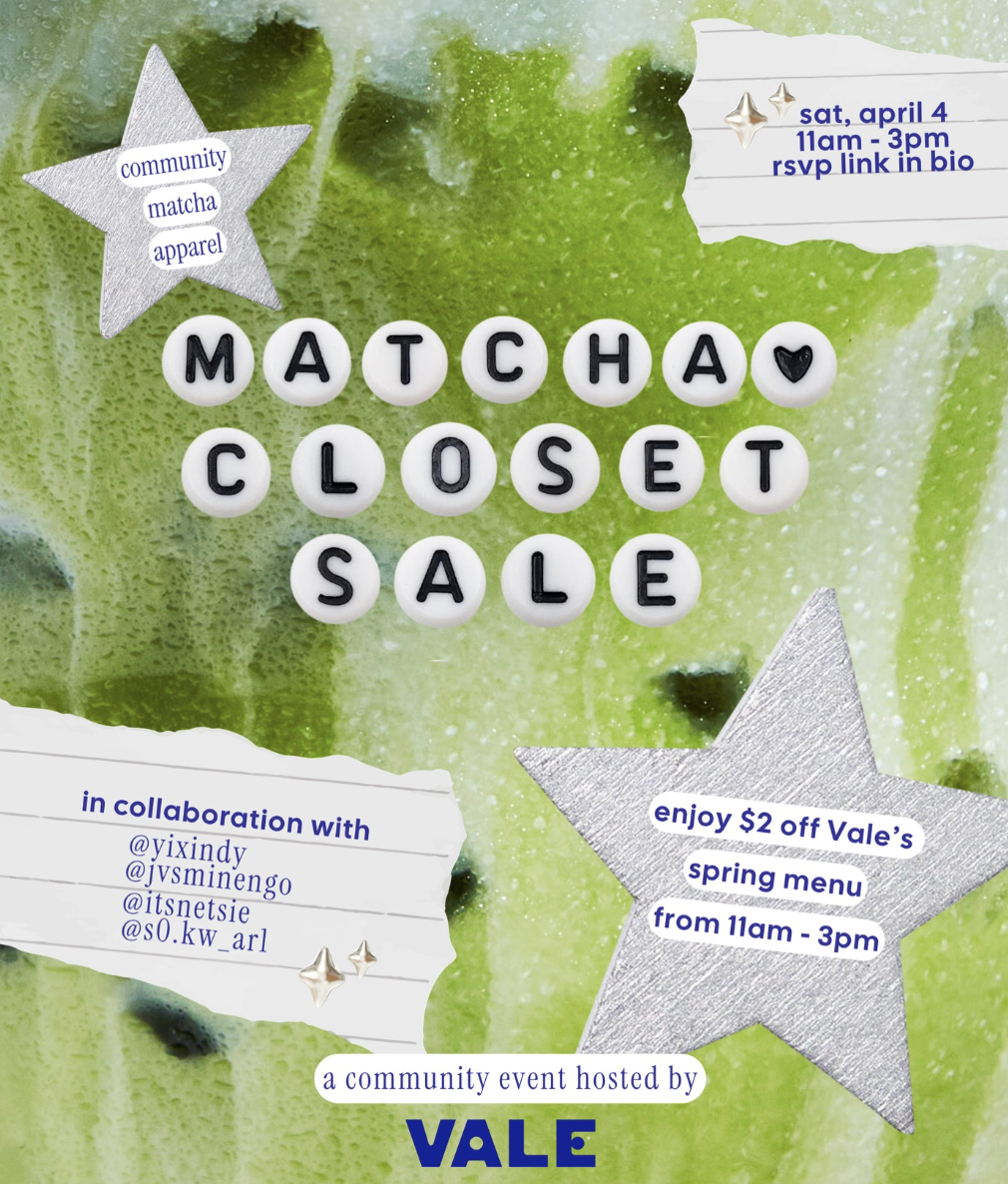 Vale is hosting a pop-up featuring curated pieces from four local creators' closets alongside their new Spring Collection launch - with $2 off those drinks all afternoon. Low-pressure browsing with good matcha, and a solid way to find something new without the big-market energy.
