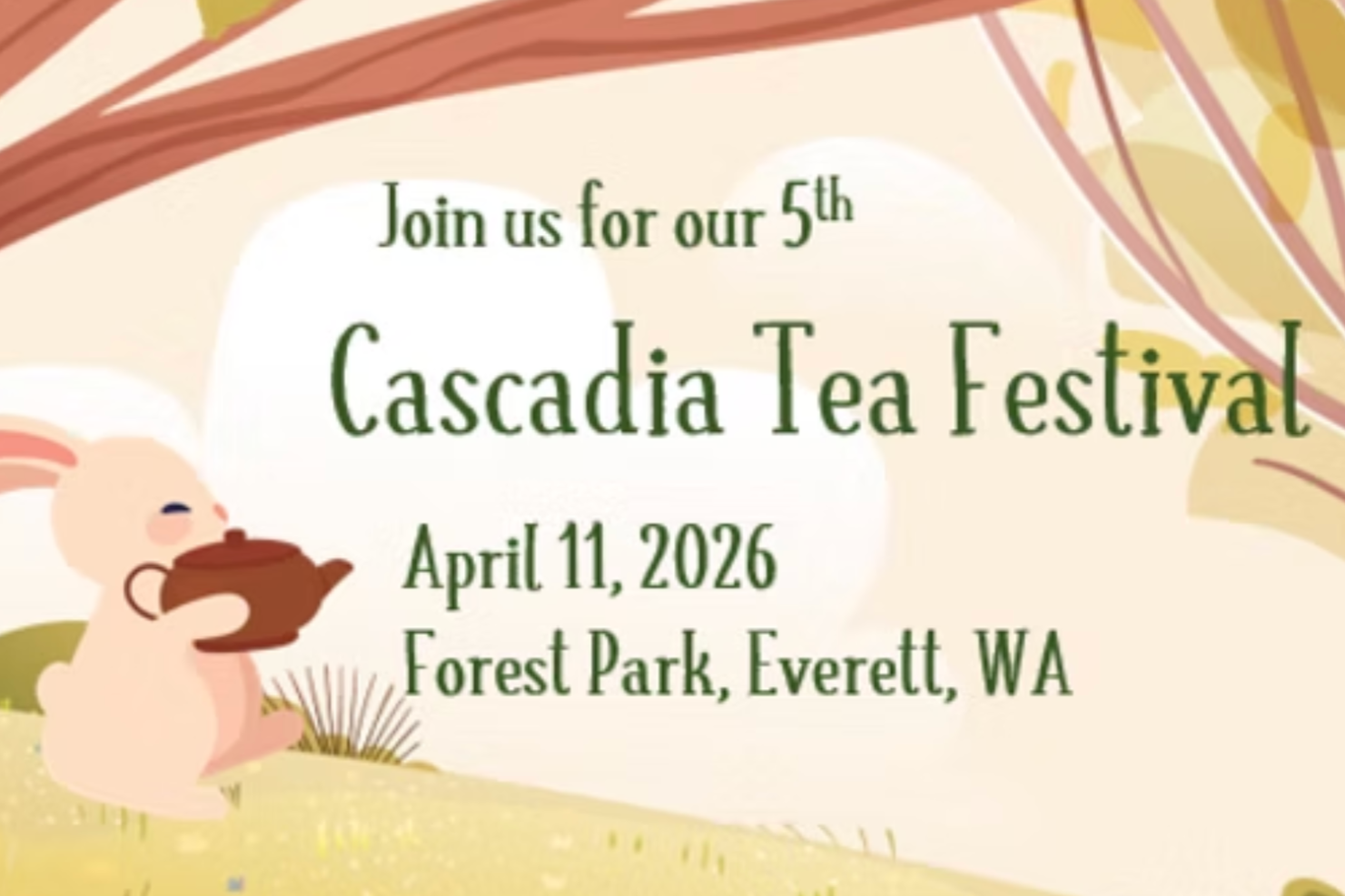 The fifth annual Cascadia Tea Festival takes over Forest Park's Floral and Lions Halls in Everett - about 30 minutes north of the city. Free to attend (pay-what-you-will), with vendors, informal tasting sessions, and workshops running across the day. Bring your own cup and a snack - there are treats from La Liath Bakery on site, but it's worth packing some food too.